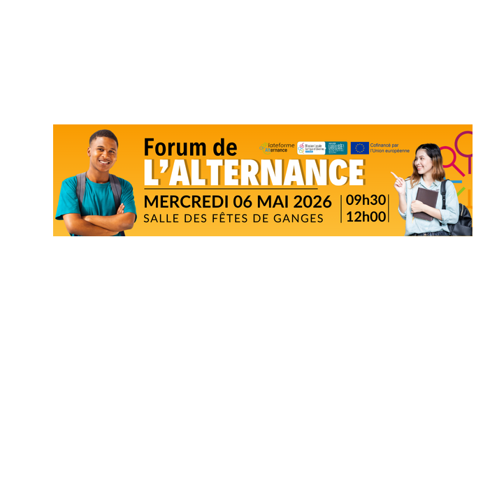 L’événement aura lieu le mercredi 6 mai de 9h30 à 12h dans la salle des fêtes de Ganges. Plus de 20 recruteurs, CFA et centres de formation seront présents, ainsi que la Maison Régionale de l’Orientation.