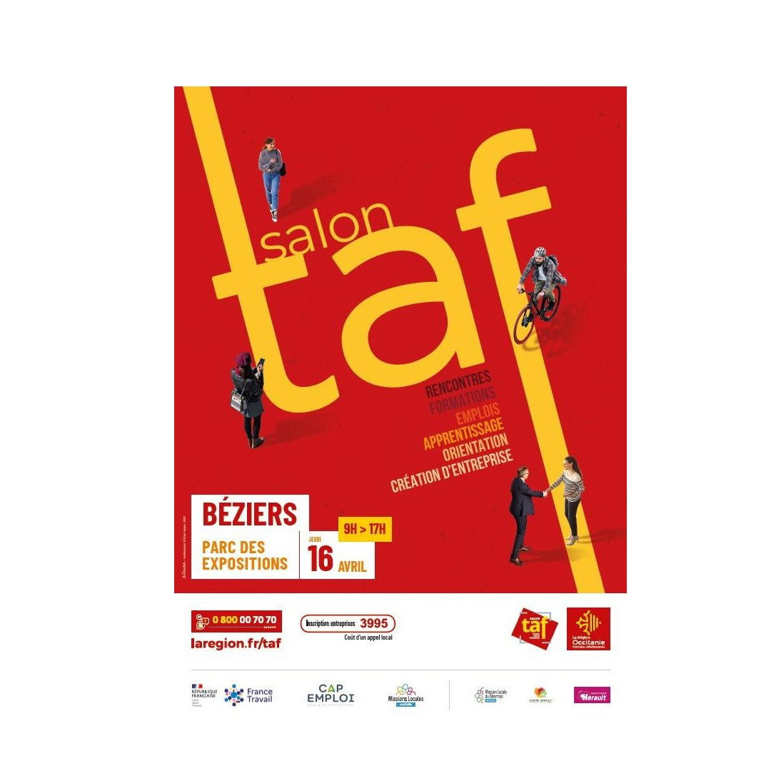 La Région Occitanie organise en partenariat avec France Travail, les Missions Locales, le Département de l’Hérault et le territoire, la quatrième édition du Salon TAF de Béziers qui aura lieu jeudi 16 avril 2026 au Parc des Expositions de Béziers de 9h à 17h.